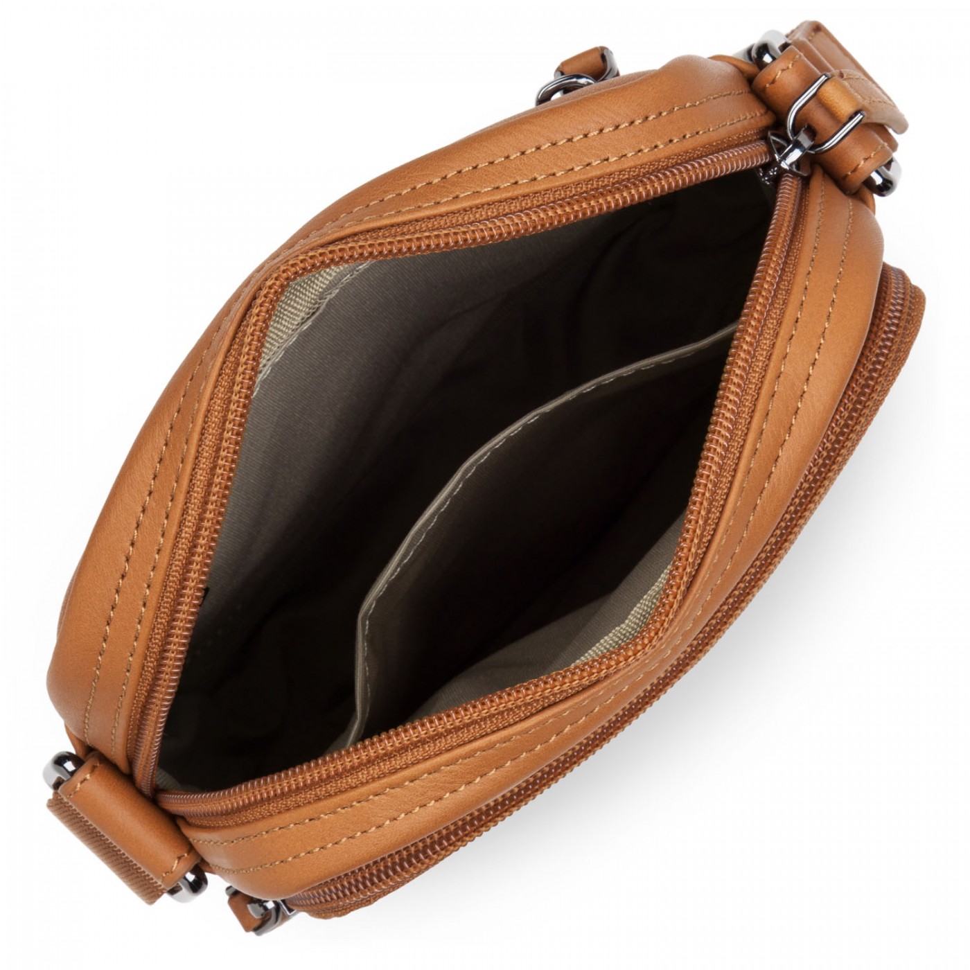Description : Poche avant zippée, poche arrière zippée, compartiment téléphone, poche intérieure zippée