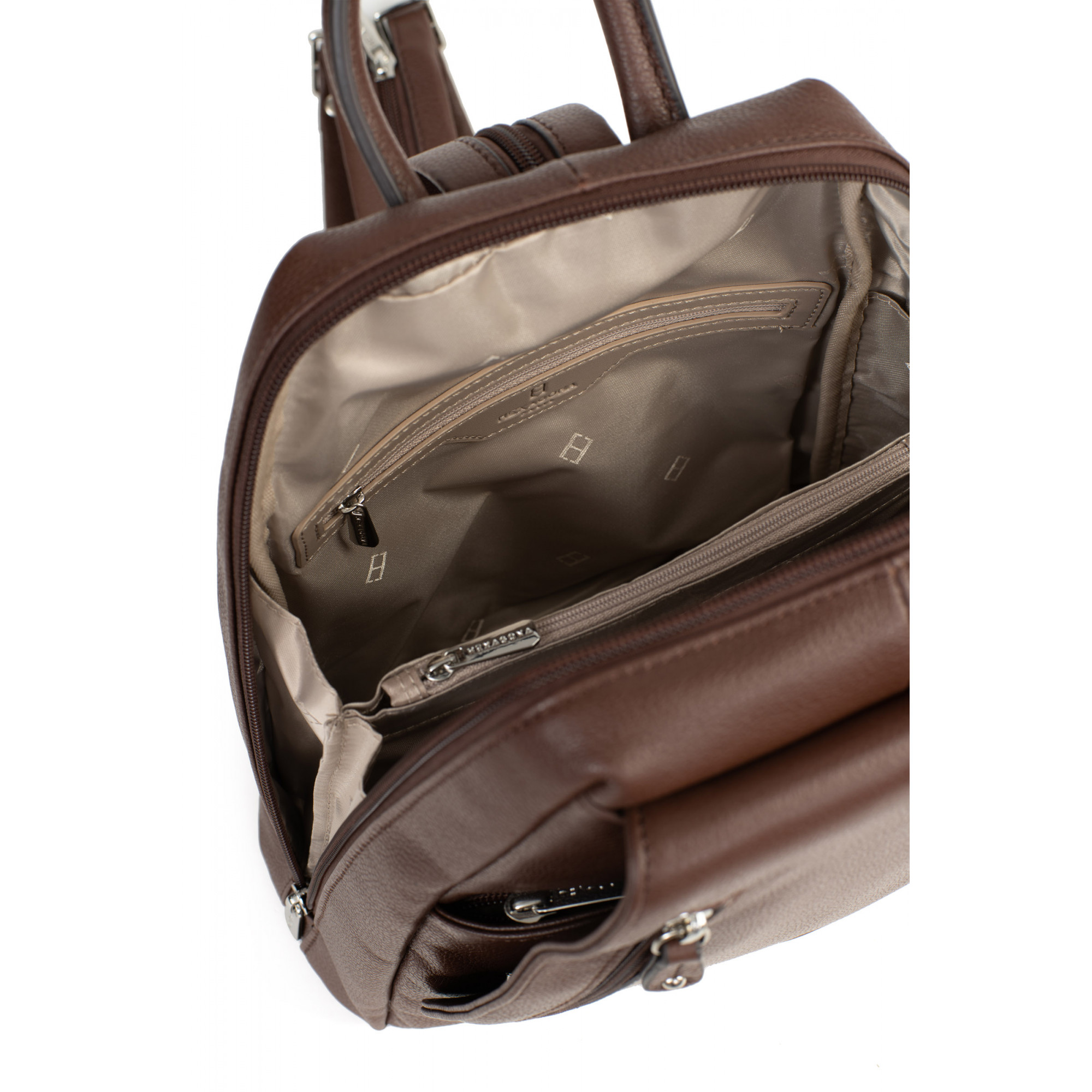 Description : Un compartiment principal avec une poche de séparation zippée, une poche plate zippée et deux poches plates (dont un compartiment téléphone)